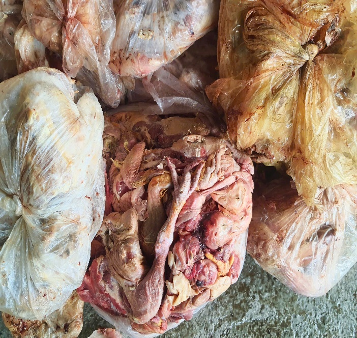 Cụ thể, ngày 19/5/2025 đoàn kiểm tra Đội QLTT số 2 phối hợp với các cơ quan chức năng kiểm tra kho hàng tại thôn Tân Đức, xã Đạo Đức, huyện Vị Xuyên, tỉnh Hà Giang của hộ kinh doanh Nguyễn Văn Dũng, phát hiện trong kho đông lạnh của hộ kinh doanh Nguyễn Văn Dũng có trên 3,9 tấn thực phẩm đông lạnh gồm: Cổ gà, cánh gà, chân gà… đã qua sơ chế đã biến đổi màu sắc, bốc mùi hôi thối... Trị giá hàng hóa vi phạm là 19.595.000 đồng.