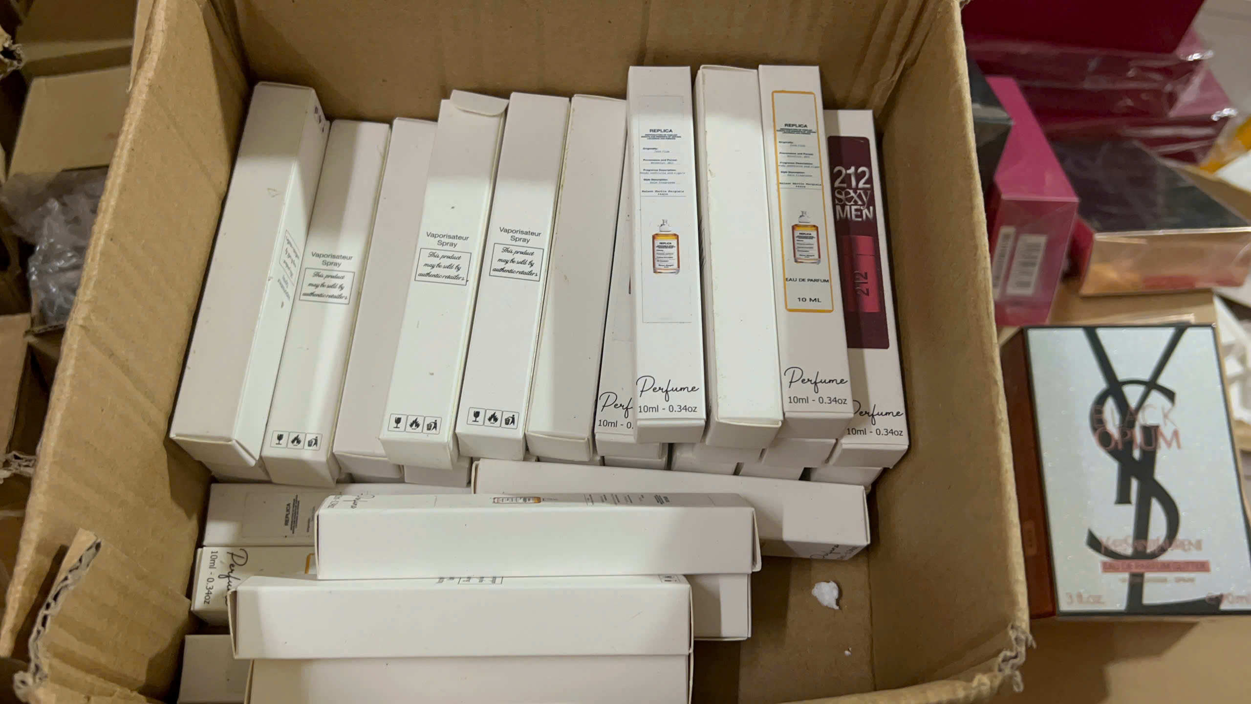 Tại đây, Đoàn kiểm tra đã phát hiện số lượng lớn sản phẩm là nước hoa mang các thương hiệu danh tiếng toàn cầu như Giovani, Dior, Louis Vuitton, Armani... Tuy nhiên, bước đầu kiểm tra, Đoàn kiểm tra nhận định, các sản phẩm này đều có dấu hiệu bị làm giả rất tinh vi từ nhãn mác cho đến cách đóng hộp.