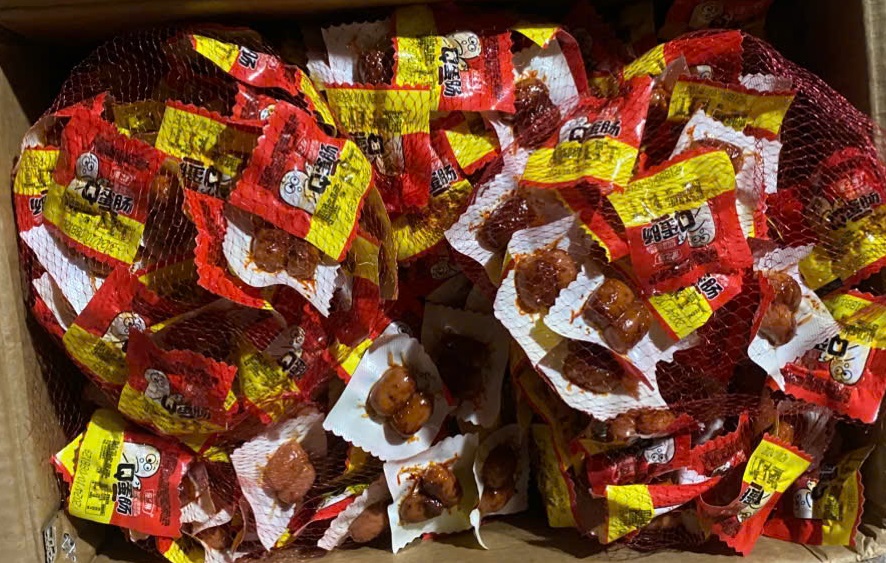 Tại thời điểm kiểm tra kho hàng, toàn bộ thực phẩm không rõ nguồn gốc chủ yếu là xúc xích, thịt bò khô và bánh kẹo các loại được để trà trộn cùng với một số mặt hàng thực phẩm có giấy tờ. Điều này khiến công tác kiểm đếm, phân loại của lực lượng chức năng gặp nhiều khó khăn. Trên bao bì các sản phẩm đều in chữ nước ngoài, không có tem nhãn phụ tiếng Việt. Nhiều sản phẩm đã có hiện tượng chảy nước và xuất hiện mùi hôi nồng.
