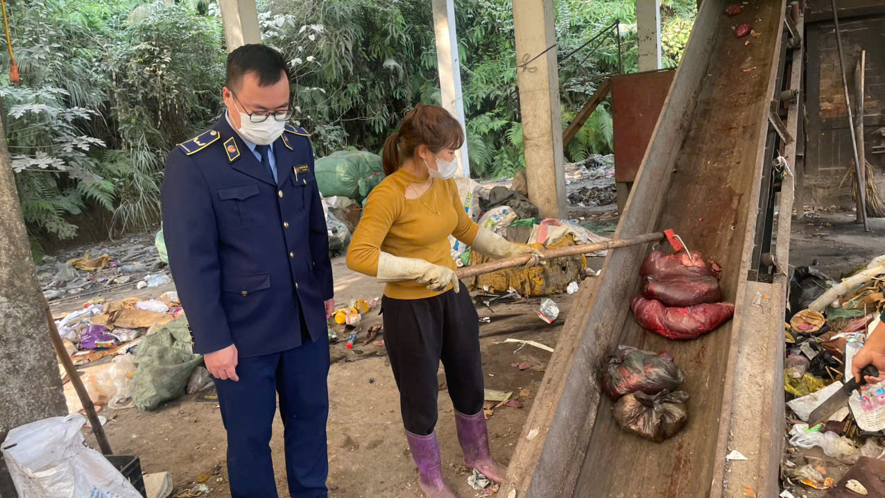 Đội QLTT số 3 phối hợp Trạm Chăn nuôi và Thú y huyện Thanh Ba, Ban Quản lý các công trình công cộng huyện Thanh Ba và ông N.K.T là lái xe kiêm chủ hàng tiến hành tiêu hủy số hàng hóa gồm 103 kg nội tạng động vật (nội tạng trâu, bò).