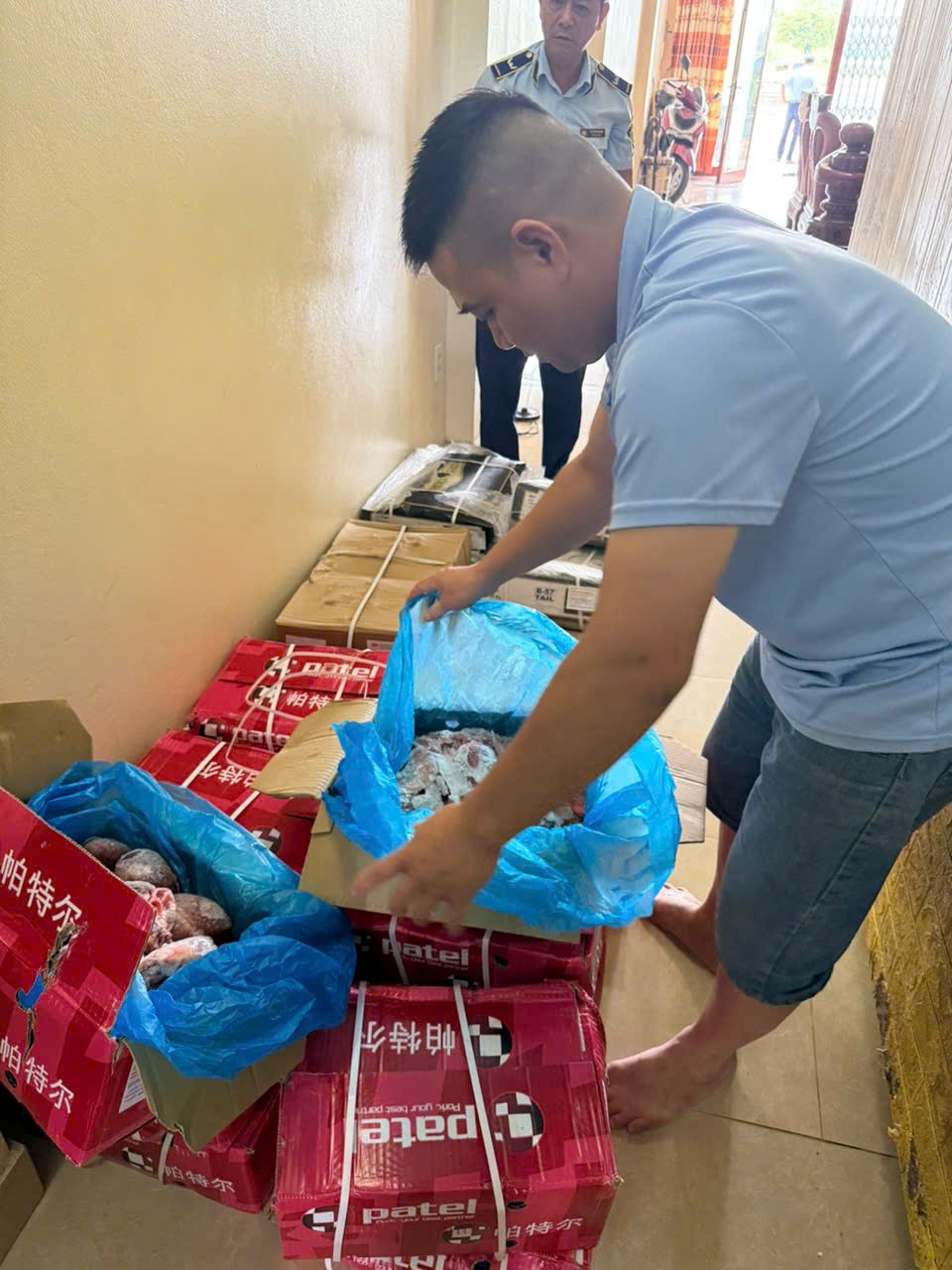 Kiểm tra thực tế, lực lượng chức năng phát hiện trong kho lạnh của hộ kinh doanh có trên 3 tạ thực phẩm đông lạnh gồm: 200 kg tim lợn, 80 kg đuôi bò, 45kg chân gà… Qua làm việc, chủ hộ kinh doanh là ông H.V.T không xuất trình được hóa đơn, chứng từ chứng minh nguồn gốc, xuất xứ của số hàng hóa trên. Trị giá hàng hóa vi phạm: 19.550.000 đồng.