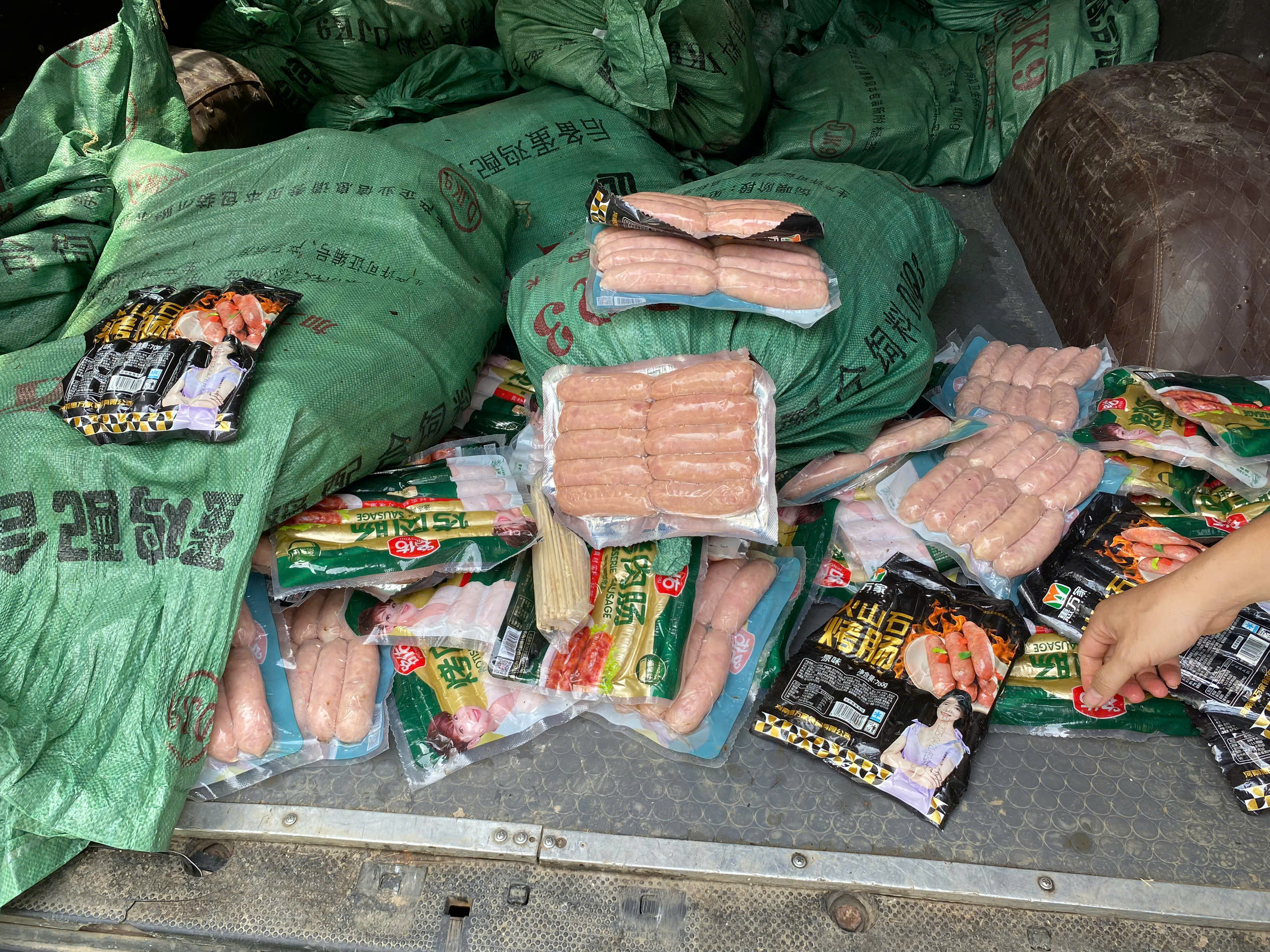800 túi xúc xích, tương đương 560kg vận chuyển trên phương tiện đang lưu thông trên đường vừa bị Đội QLTT số 6, Chi cục QLTT tỉnh Lạng Sơn phối hợp với lực lượng Công an tỉnh Lạng Sơn ngăn chặn kịp thời.